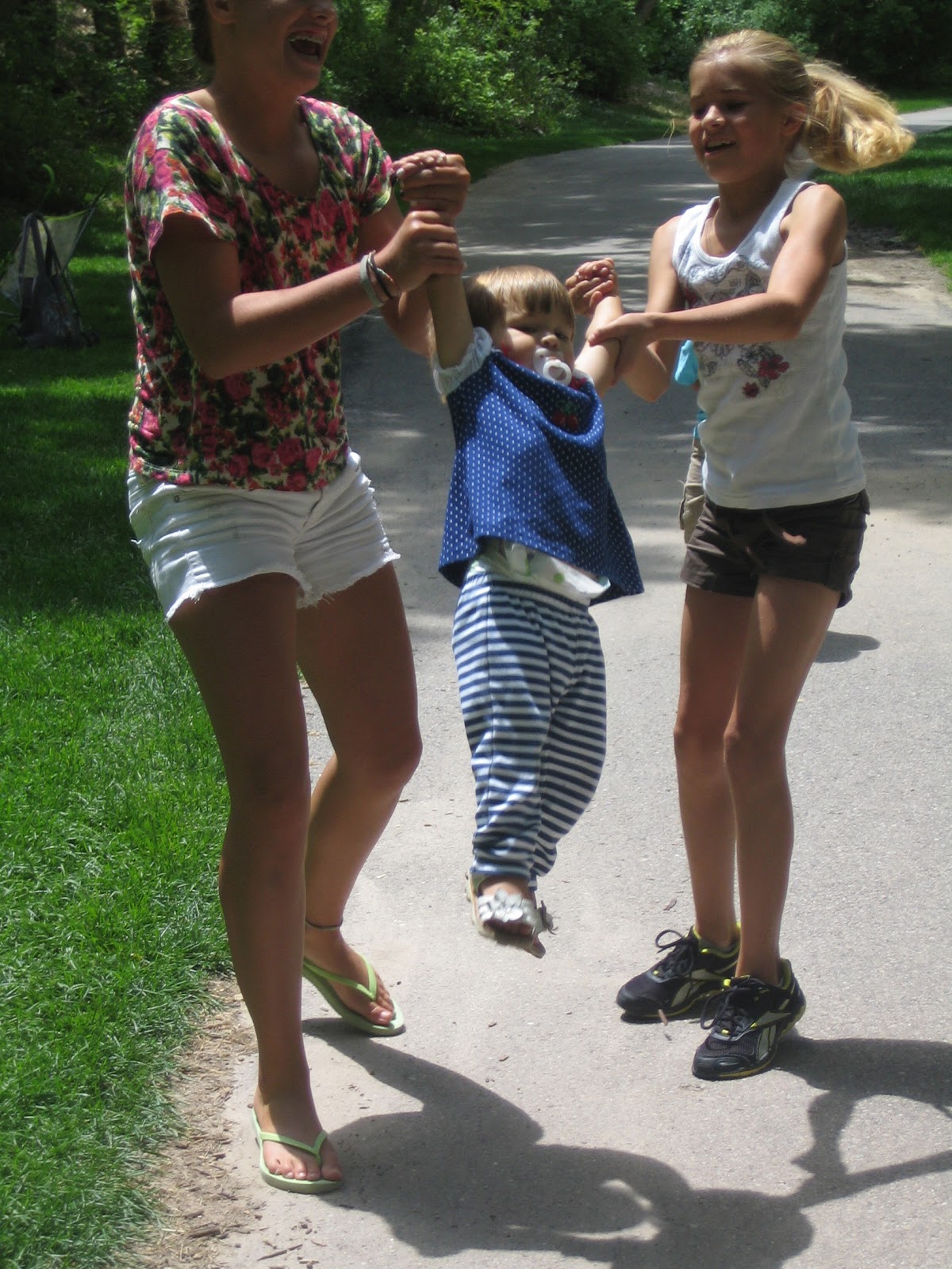Then Jenna and Sophie take Teo and Lola to look over the bridge. My babies are certainly lucky to have such wonderful cousins who love to play and take care of them.